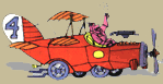Esse inventor genial, o Professor Aéreo no seu carro cheio de truques:
