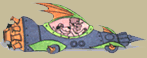 Logo atrás veremos a Máquina do Mal com seu volante malicioso e cheio de más intenções, Dick Vigarista...