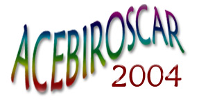 Chegou o momento mais esperado do ano. Nesta noite, direto do palco de eventos do Mitatório, iremos conhecer os ganhadores do acebiroscar 2004! A casa está lotada como nunca esteve antes, todos saíram de seus quartos da mansão acbr para conferir quem foram os premiados pelas melhores mensagens escritas durante este ano. Para comandar a festa, chamamos ao palco os apresentadores desta noite. Com vocês...